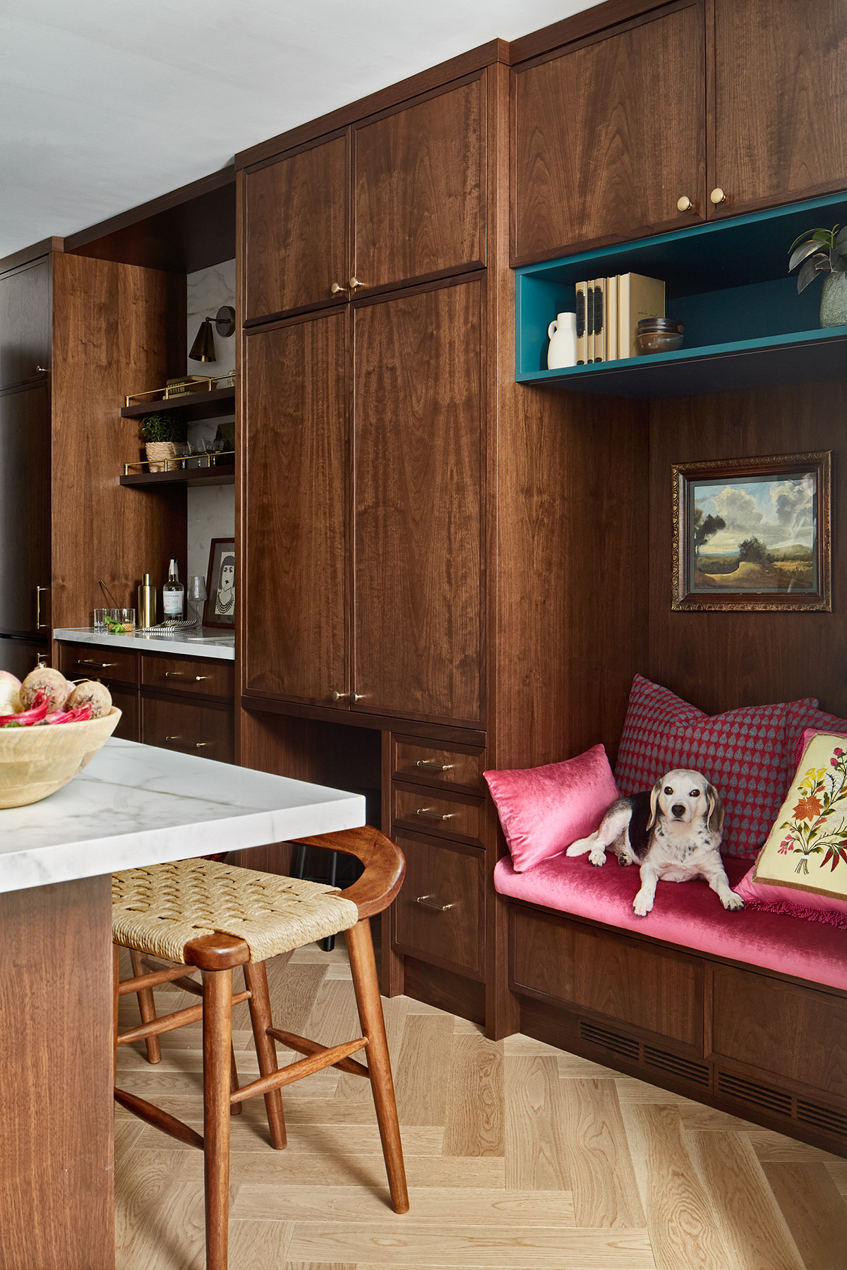 To really personalize this space the owners were open to mixing different styles, bold art work, eclectic furnishings, vibrant hues and integrating intricate pattern play into the design. We used high quality and tactile materials like velvet. We chose hand-crafted designs and moved away from the trend-driven consumption. Expressive colour palettes such as jewel tones and warm ochres were incorporated instead of the neutral beige and grey palettes long favoured in home decor. The result is a home that is rich in personality, while retaining a refined and curated sensibility.